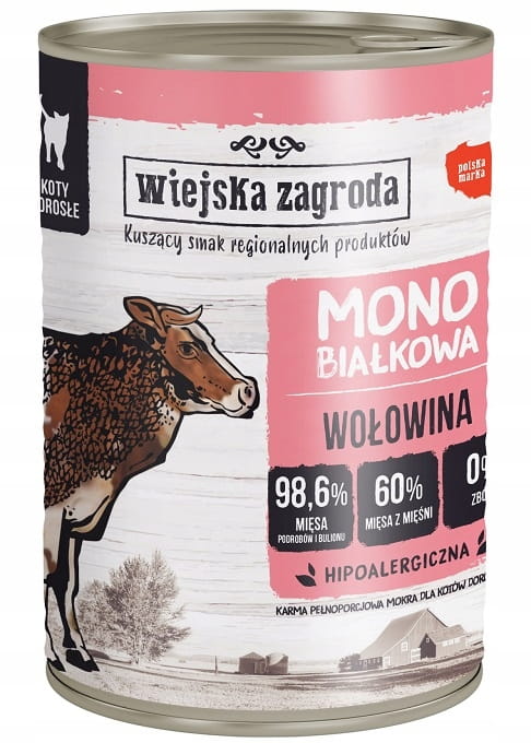 Wiejska Zagroda Kot Monoprotein Wołowina 12 x 400g