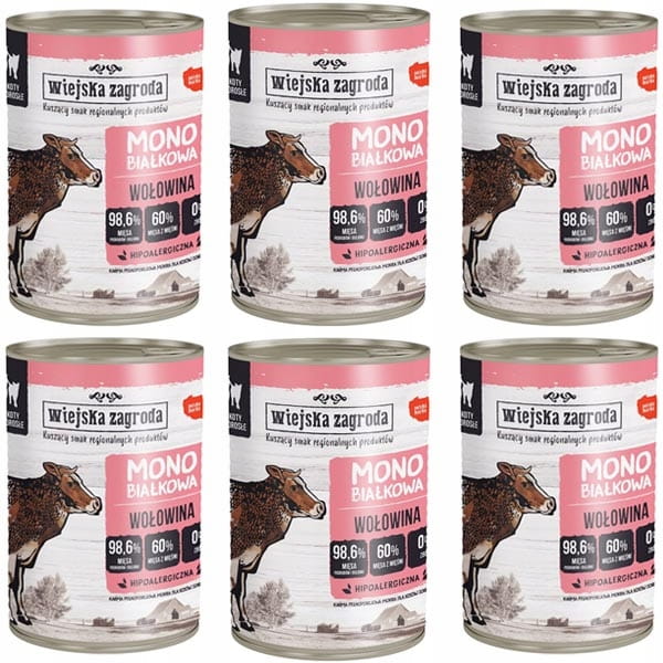 Wiejska Zagroda Kot Monoprotein Wołowina 6 x 400g