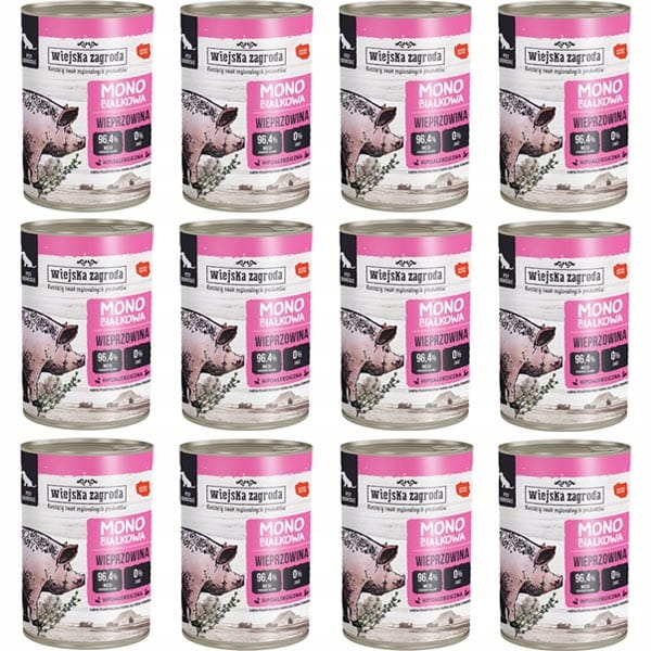Wiejska Zagroda Monobiałkowa Wieprzowina 12 x 400g