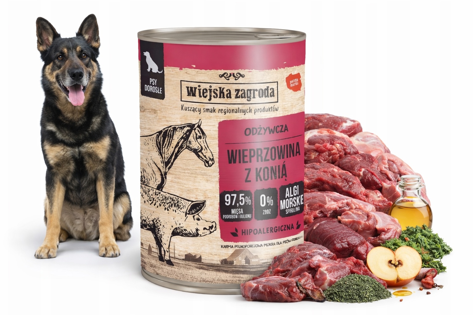 Wiejska Zagroda karma mokra dla psa Wieprzowina z Koniną 800g + szarpak