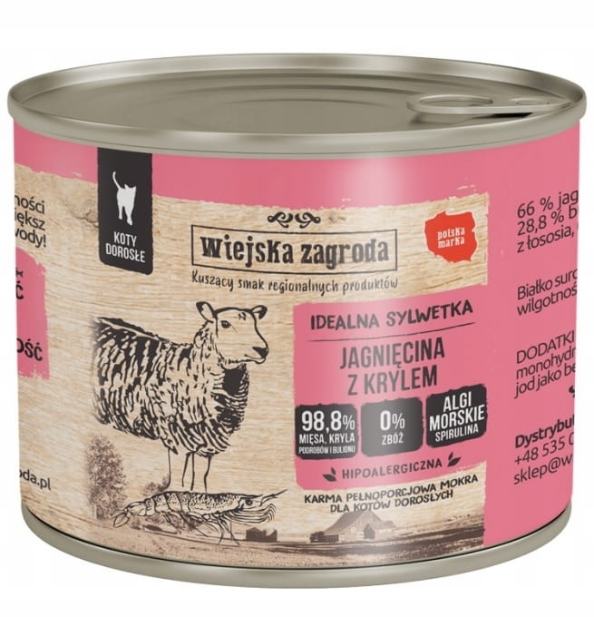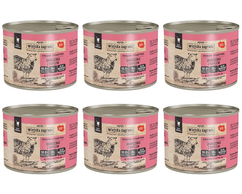 Wiejska Zagroda dla kota Jagnięcina z krylem 6 x 200g