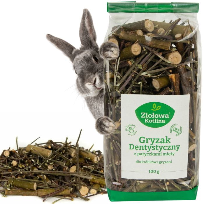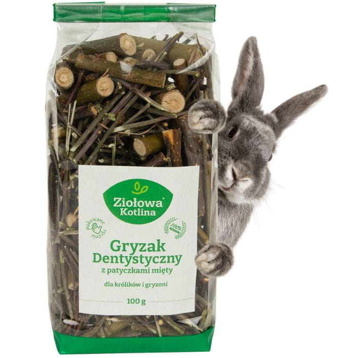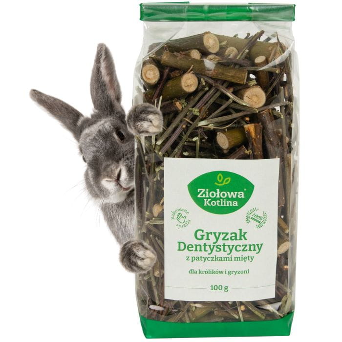 Ziołowa Kotlina Gryzak Dental z patyczkami mięty dla królika gryzoni 100g