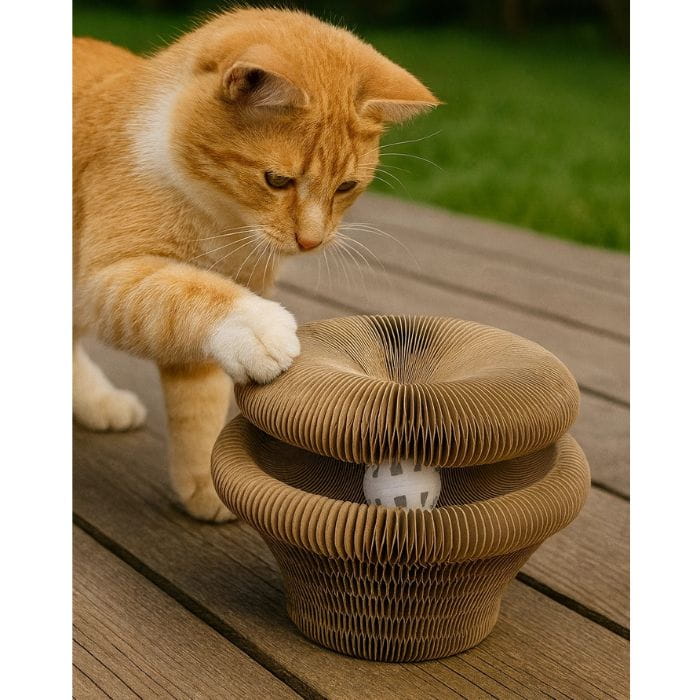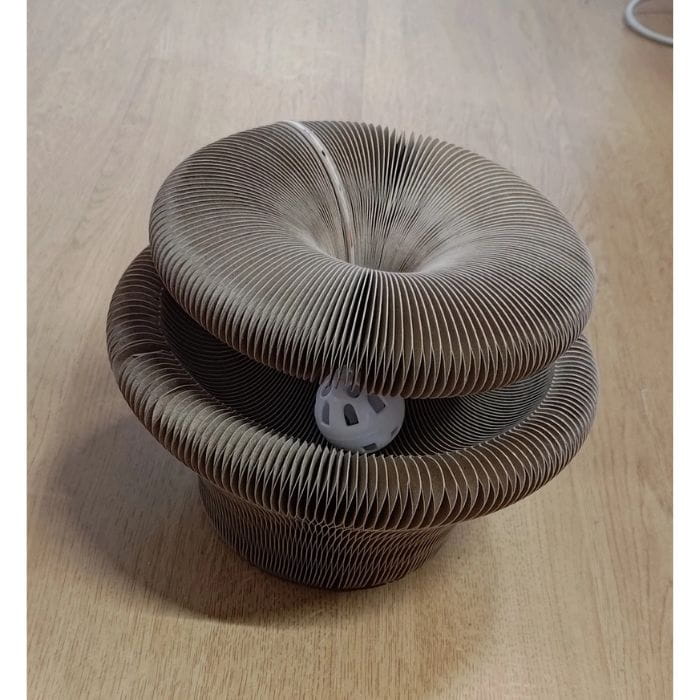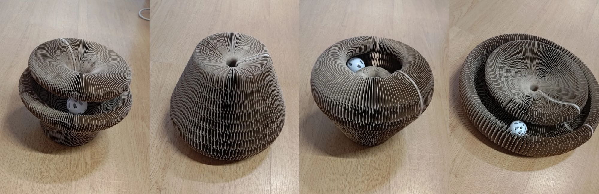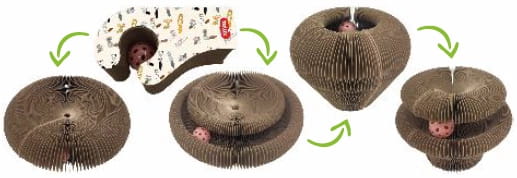Konstrukcja 4w1: Składana konstrukcja umożliwia ułożenie drapki w cztery różne konfiguracje, zapewniając różnorodne możliwości drapania i zabawy dostosowane do aktualnych potrzeb kota