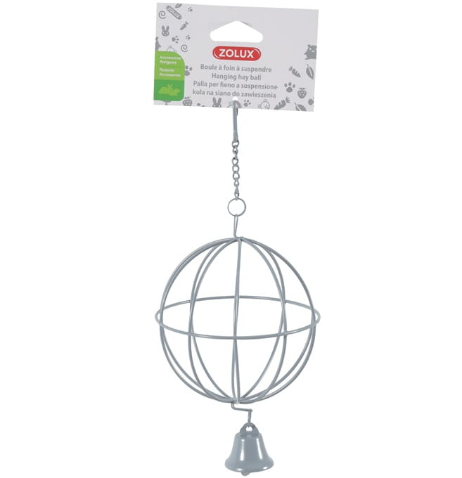 Zolux Metalowa szara Kula z dzwoneczkiem na Siano 10 cm