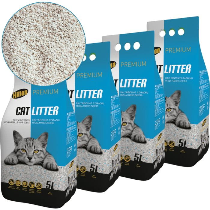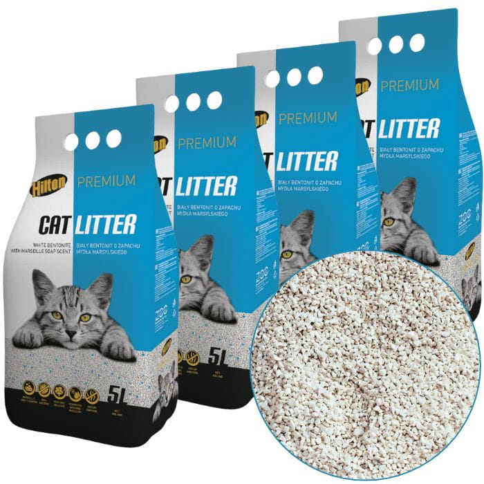 Żwirek bentonitowy dla kota biały Mydło marsylskie Hilton Premium 4 x 5l