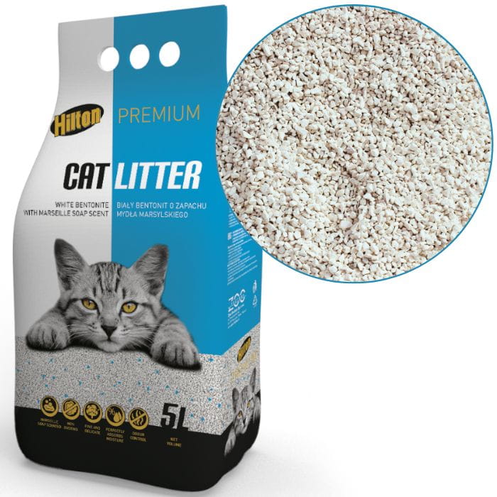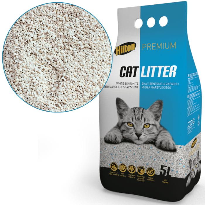 Żwirek bentonitowy dla kota biały Mydło marsylskie Hilton Premium 5l